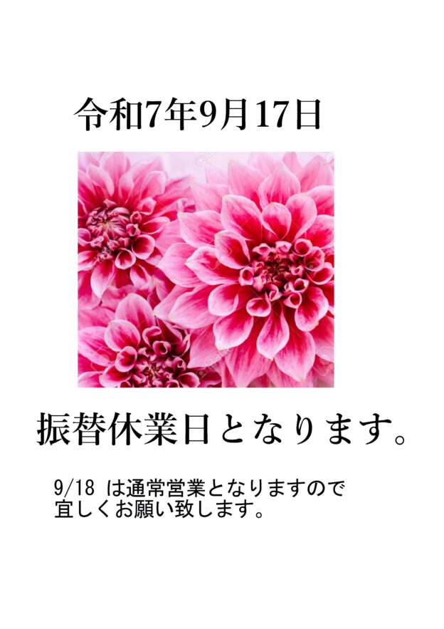 ご迷惑をおかけしますが、9月18日以降のご来店お待ちしております。